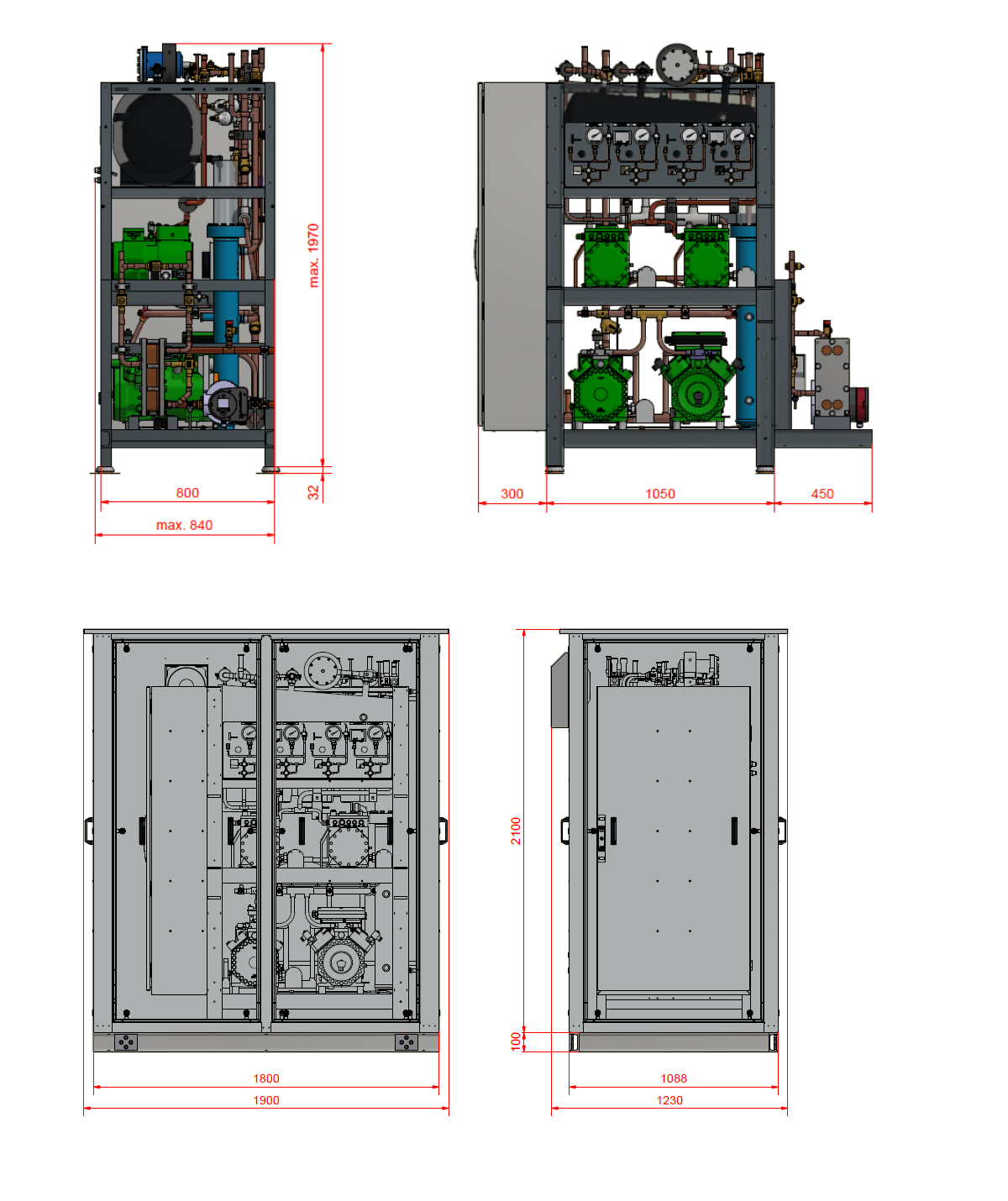 NEU: Modularer Verdichteraufbau für erweiterten Einsatzbereich! Individuelle Belegung der Verdichterplätze mit bis zu 2x Tiefkühlung und bis zu 3x Normalkühlung. Dadurch ist die *carbo-Line nicht nur als Booster, sondern auch als reiner TK-Booster oder NK-Maschine einsetzbar.