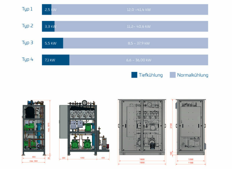 Normalkühlung: 6,6 kW bis 41 kW bei to/tg = -5/+36°C